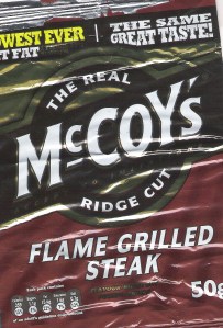 Imagine my surprise, therefore, that having consumed a packet of McCoy’s Flame Grilled Steak crips, I turned over the packet to read that they were indeed “Man Crisps” … you could have knocked me down with a feather!