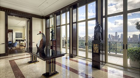 The penthouse stands at the top of 15 Central Park West, a landmark building designed by architect Robert Stern and boasts a custom-made oval bedroom, a library, gallery, chef’s kitchen and a 2,100 sq ft (195 sq m) terrace running along three sides of the building.
