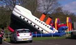 I can’t help but wonder what the councillors of Antrim Borough Council were thinking when they used an inflatable sinking ship in one of their parks on this particular anniversary? The slide was among a number of facilities provided to entertain children in Lough Shore park last Sunday.