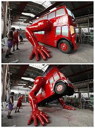 Cerny bought the 1957 bus from an owner in the Netherlands, attached two huge arms, an electrical engine and a lot of wiring and suspension tools to make it into a piece of art named “London Boosted”.