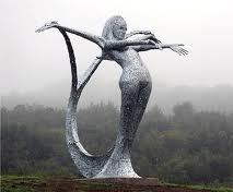 Her form, similar to a giant metal mermaid, features two huge swooping arcs inspired by the Gaelic name for Cumbernauld, “comar nan allt”, which means “coming together of waters.” and it is hoped the work will help Cumbernauld start ridding itself of its dismal image that has seen it win the Carbuncle Award for poor architecture.