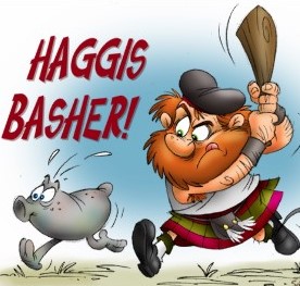 This will hopefully help explain to the uninitiated reading this that haggis is something you eat – a fiction sometimes maintained is that a haggis is a small Scottish animal with legs on one side longer than those on the other, so that it can run around the steep hills of the Scottish Highlands without falling over. According to one poll, 33% of American visitors to Scotland believed haggis to be an animal!